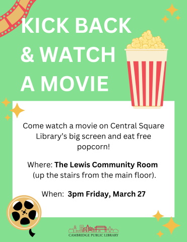 Join us to watch a movie on Central Square Library's big screen and eat popcorn! No registration required.