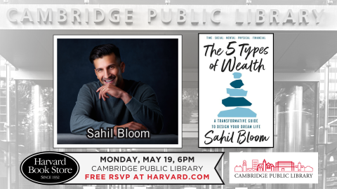 Harvard Book Store and the Cambridge Public Library welcome Sahil Bloom—inspirational writer, owner of SRB Holdings, and content creator, captivating millions of people every week through his insights and biweekly newsletter, The Curiosity Chronicle—for a discussion of his debut book The 5 Types of Wealth: A Transformative Guide to Design Your Dream Life.