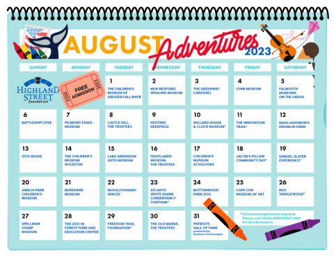 August Adventures returns! During the month of August, we are excited to partner with special Massachusetts cultural institutions to provide one free activity each day for 31 days.