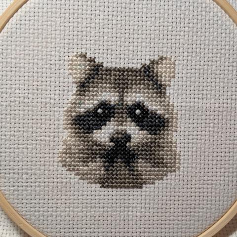 Learn the basics of cross stitching while working on a cute raccoon pattern. All materials provided – no experience needed! You'll leave with materials and a pattern to finish your cross stitch piece after class.