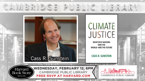 Harvard Book Store and the Cambridge Public Library welcome Cass R. Sunstein—the Robert Walmsley University Professor at Harvard University, where he is the cofounder and codirector of the Initiative on Artificial Intelligence and the Law—for a discussion of his new book Climate Justice: What Rich Nations Owe the World—and the Future.