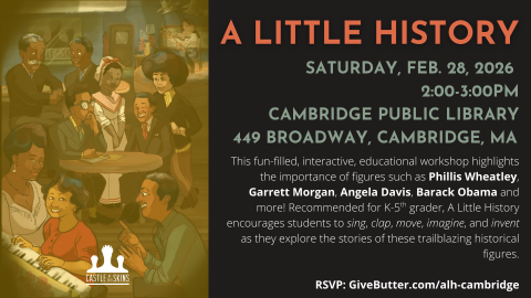 Presented by Castle of our Skins, "A Little History" is a 60 minute interactive recital that tells the simplified stories of nine legendary figures in Black History through original music, poetry, and engagement.