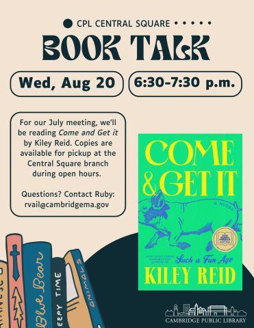 This month, we're reading Come and Get it by Kiley Reid. Copies are available for pickup at the Branch.