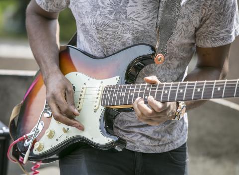 Photo of someone playing guitar.