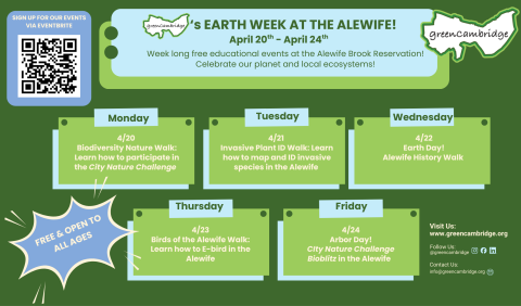 Join Green Cambridge for a week of free educational outdoor programming to celebrate earth week and our local environment!