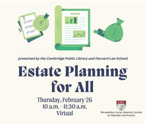 The Cambridge Public Library and Legal Services Center of Harvard Law School are excited to offer Estate Planning for All.
