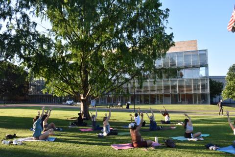 Shayla Tate of M.U.D.D. Flower Yoga leads a 60-minute evening flow in the Community Room.