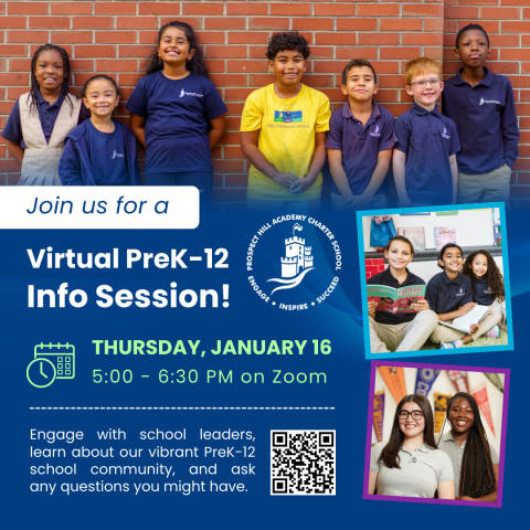 Prospect Hill Academy Charter School is holding a virtual Info Session for families of incoming PreK to Grade 9 students interested in applying for the 2025-2026 school year.