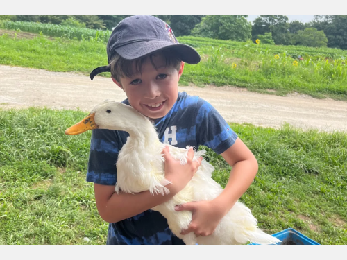 Reading with a Duck from Land's Sake Farm (O'Neill)