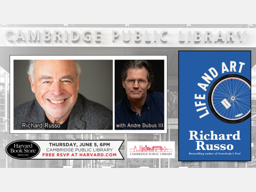 Harvard Book Store and the Cambridge Public Library welcome Richard Russo—Pulitzer Prize-winning author of Somebody's Fool and The Destiny Thief—for a discussion of his new essay collection Life and Art. He will be joined in conversation by Andre Dubus III—author of Such Kindness and eight other books, including the bestsellers Townie and House of Sand and Fog. Registration is required.
