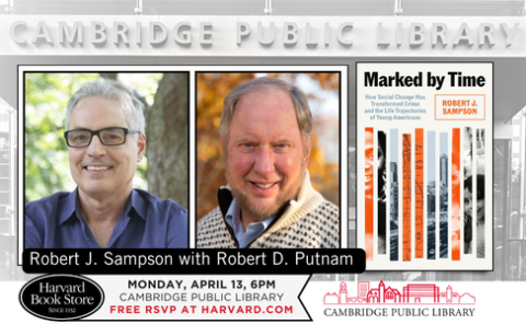 Harvard Book Store and the Cambridge Public Library welcome Robert J. Sampson—Woodford L. and Ann A. Flowers University Professor at Harvard University, Affiliated Research Professor at the American Bar Foundation, and a member of the National Academy of Sciences—for a discussion of his new book Marked by Time: How Social Change Has Transformed Crime and the Life Trajectories of Young Americans. He will be joined in conversation by Robert D. Putnam—Malkin Research Professor of Public Policy, Emeritus at Harvard University and recipient of the National Humanities Medal by President Barack Obama. Registration is required.