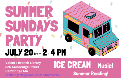 Come celebrate Valente Summer Sundays and National Ice Cream Day with soft serve from Frosty Ice Cream. Listen to some summer tunes and learn about our all-ages summer reading!