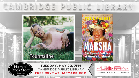 Harvard Book Store and the Cambridge Public Library welcome Tourmaline—award-winning artist, filmmaker, writer, activist, and TIME 100 Most Influential Person in the World awardee—for a discussion of her new book Marsha: The Joy and Defiance of Marsha P. Johnson.