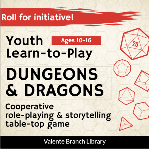 Youth ages 10-16 are welcome to join for three sessions of cooperative role-play and storytelling as we build out skills playing the table-top game DnD.