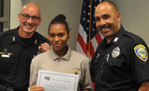 Youth workers learn about the role and function of Cambridge Police Officers and varying units within the Department, including the Traffic Unit, Explosive Ordnance Unit, and Special Response Team. They are also able to learn about and practice OUI stops, traffic stops, handcuffing, baton techniques and self-defense. Participants gain understanding about juvenile law, rights, and responsibilities with Strategies for Youth and the role of the Cambridge Fire Department, Emergency Communications Department and Pro EMS in public safety. (Daily Workouts, Mindfulness, Yoga, Boot Camp, & CPR Certification)