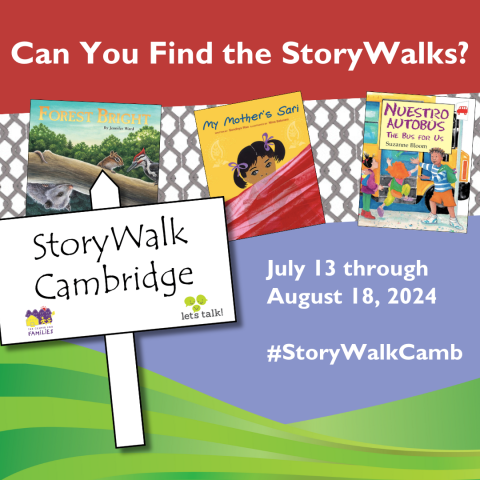 Can you find the StoryWalks? A StoryWalk is a children's book hung page by page around a park in Cambridge where families can read, walk, and talk together. Find the 8 StoryWalks in Cambridge parks!